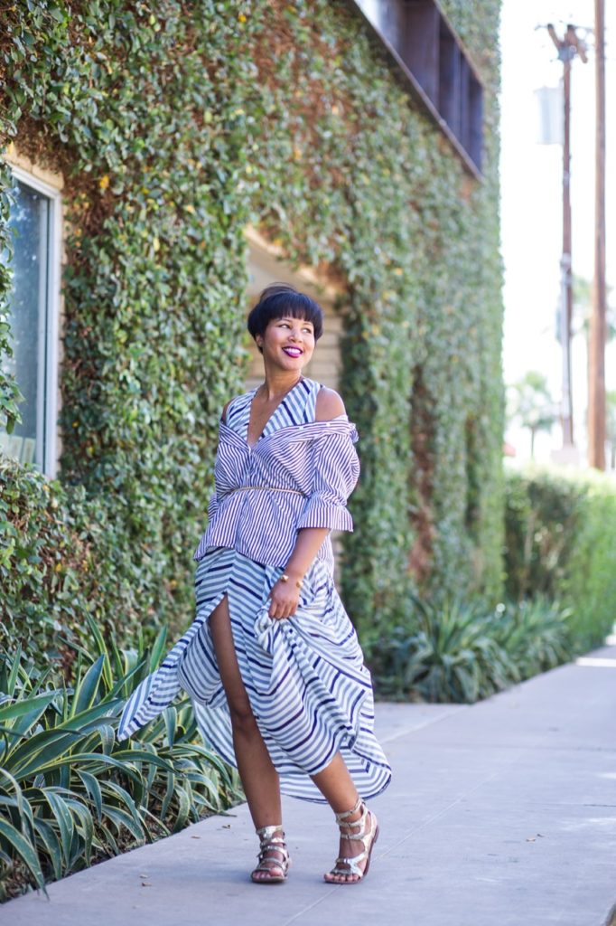 This is a trend that I experimented with earlier this Summer. I added a button up to the outside of a maxi dress to recreate the cut out shoulder trend. The button up shirt can also be added underneath any dress to take it up a notch on the style factor charts. Play around with the buttons and the shoulders.