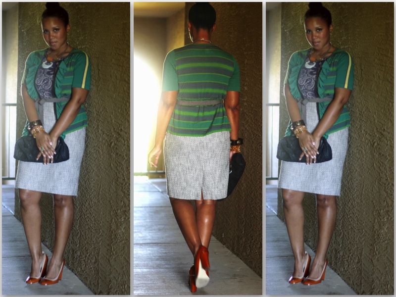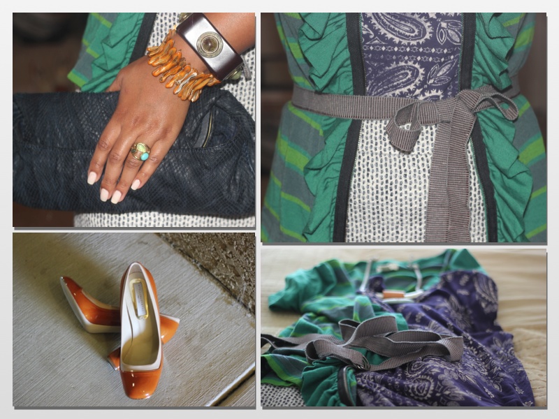 Clutch: Kenneth Cole, Ring: Banana Republic, Bracelets: Thrift Store finds, Shoes: Stella McCartney, Belt: BCBG Max Azria