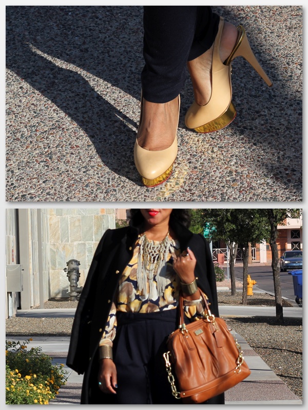 | Shoes: Charlotte Olympia, Necklace: H&M, Cuffs: Oregon Boutique, Bag: Coach, Rings: Banana Republic, Lip: Dior Blazing Red |