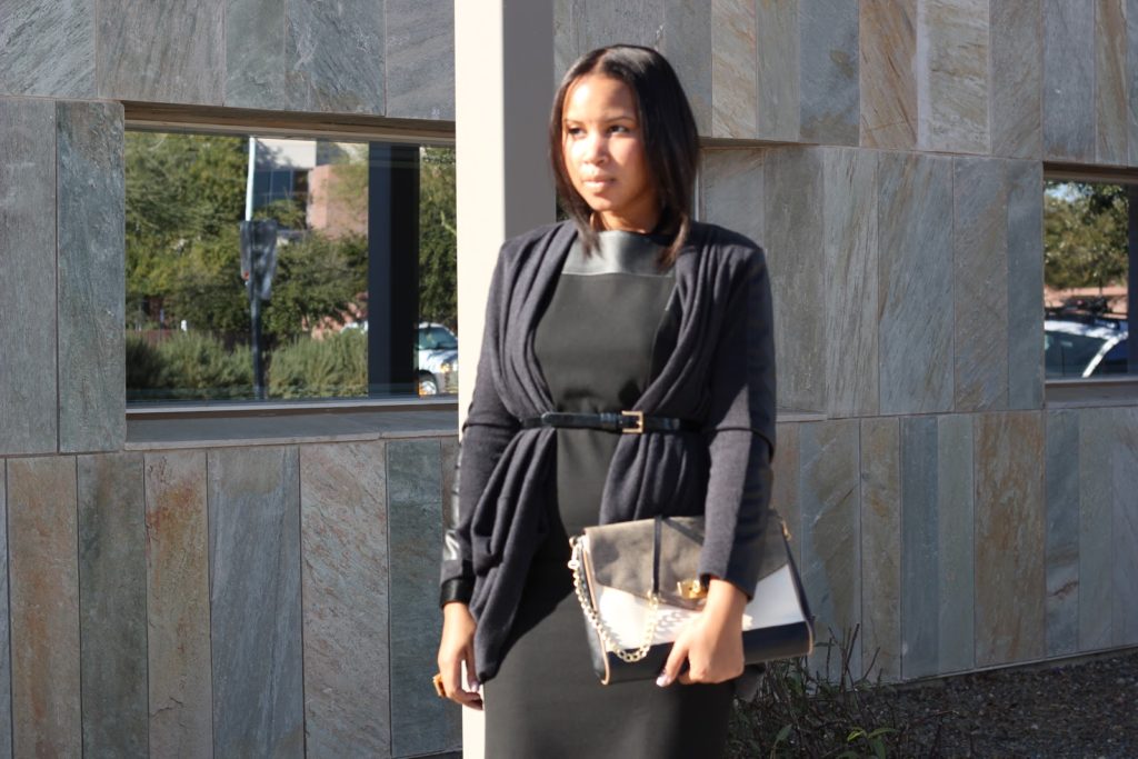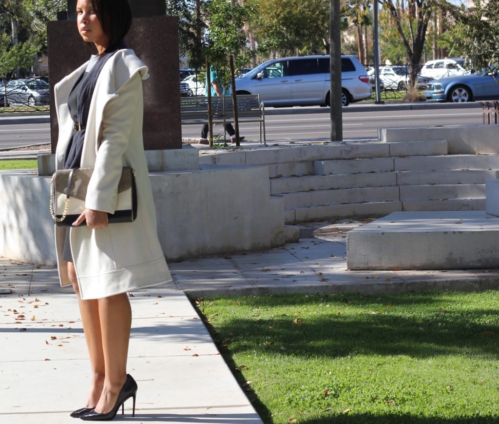 | Coat: Andre Badi (Consignment Store Find), Dress: Zara, Cardigan: Zara, Shoes: Charles Jourdan |