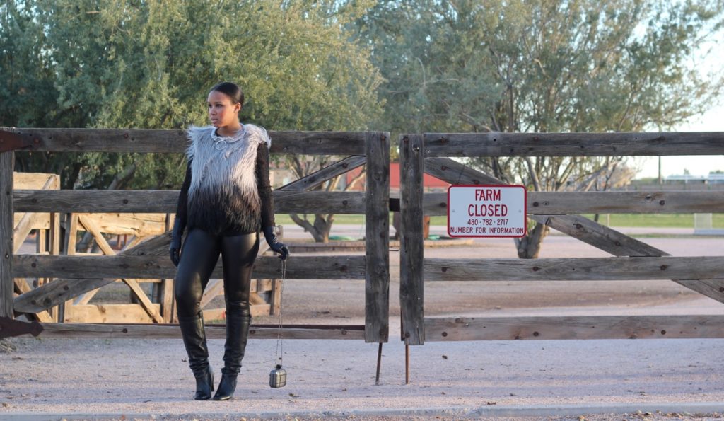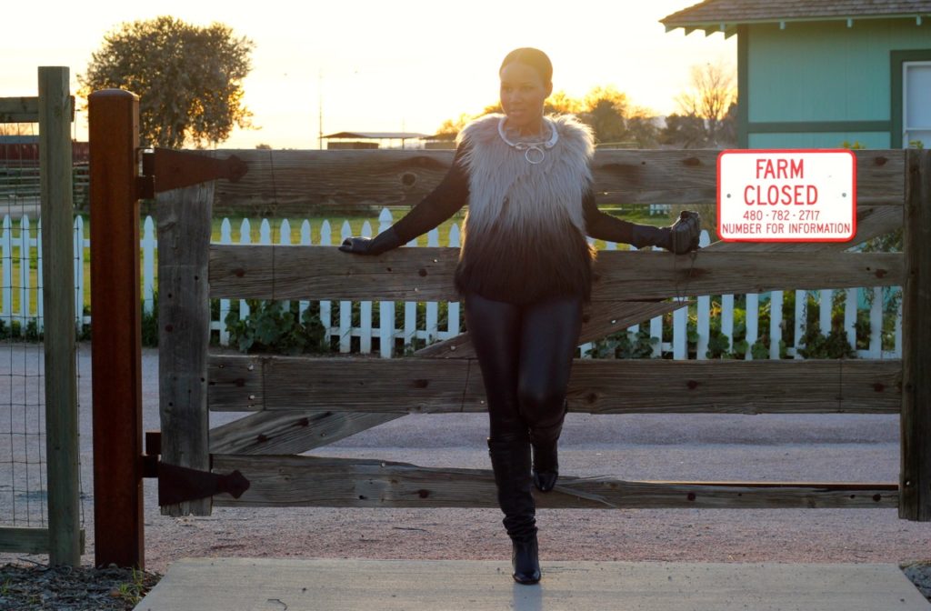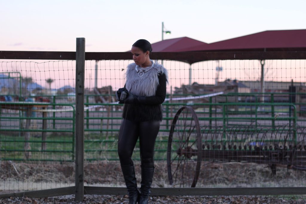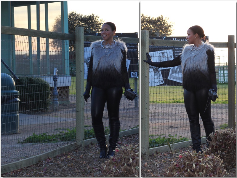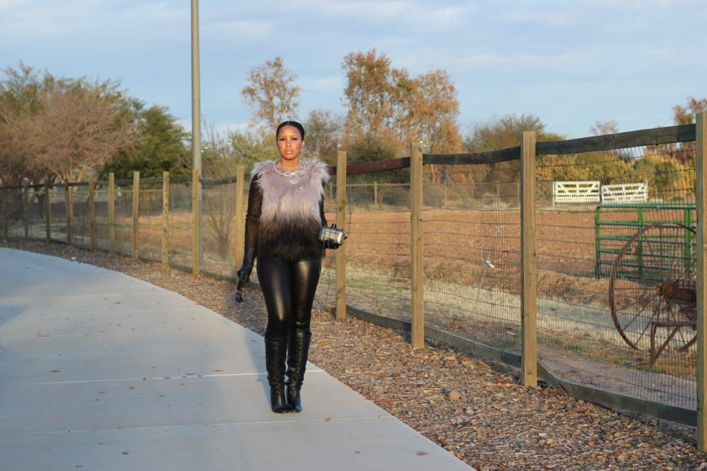 Faux Fur Vest: BCBG,  Shirt: Zara, Leggings: Forever 21