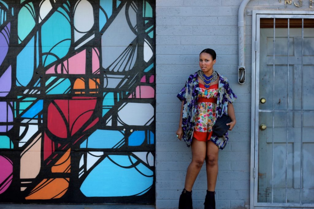So, I was feeling a little colorful this day and the graffiti artwork on Roosevelt Row in downtown Phoenix complemented my outfit perfectly!