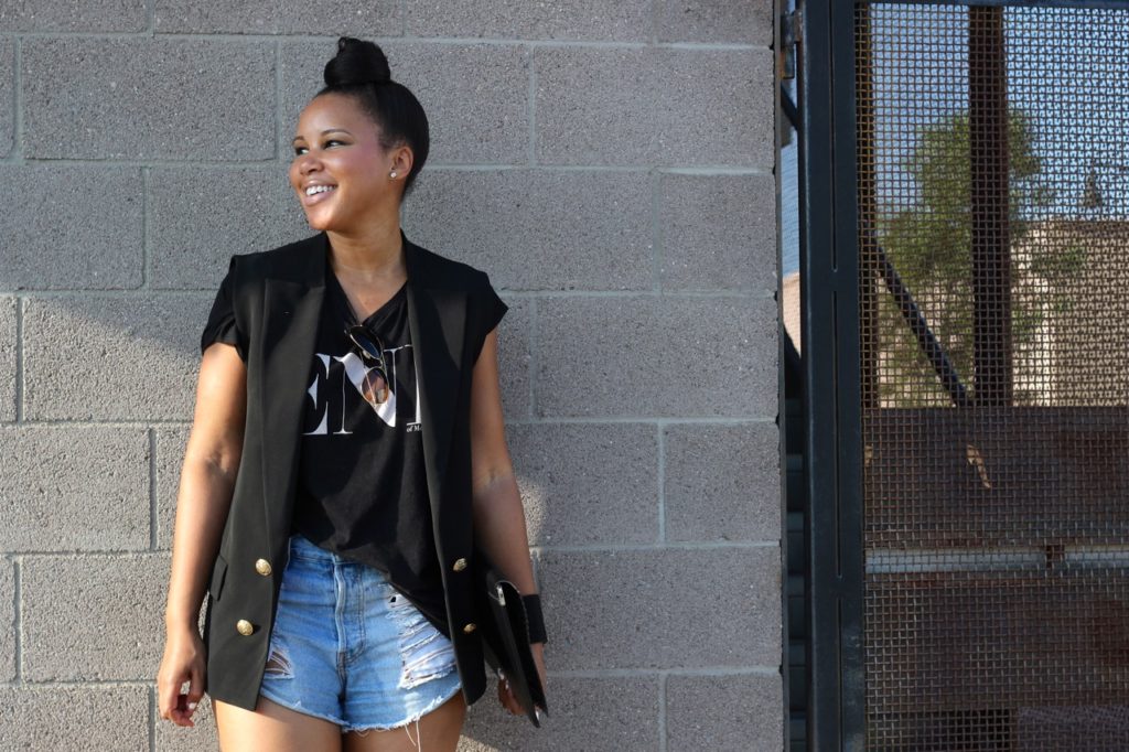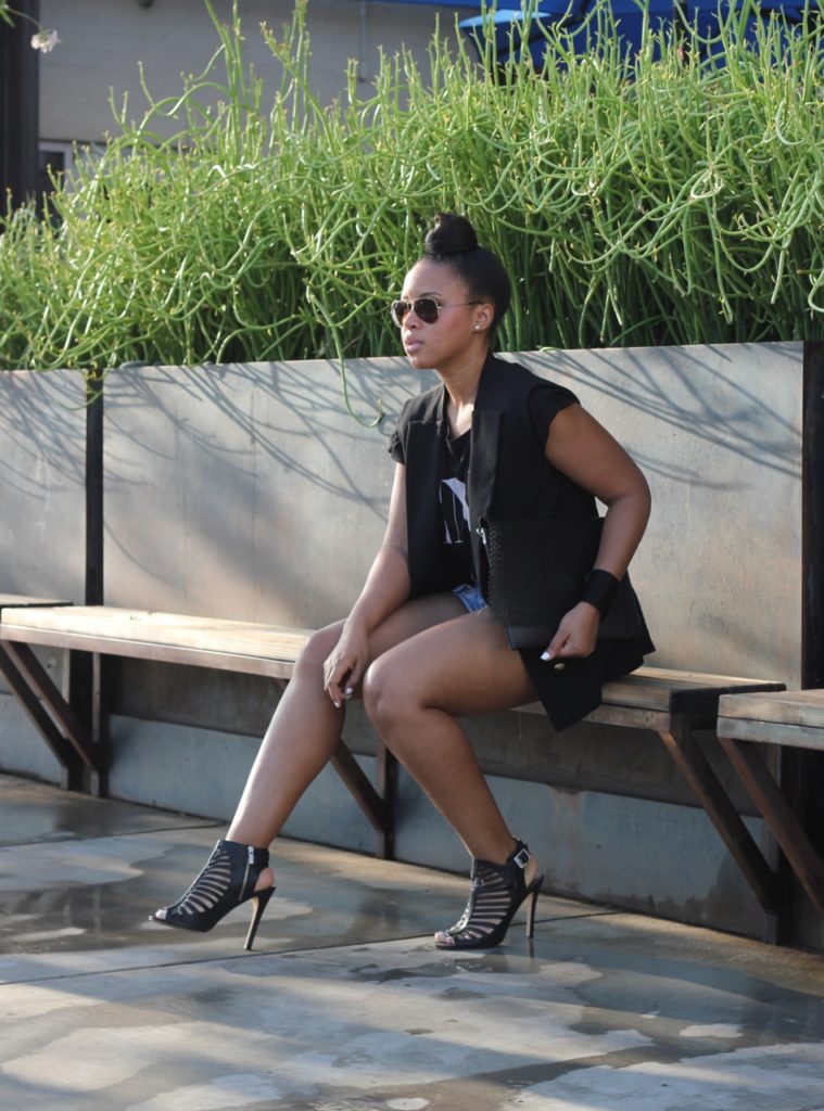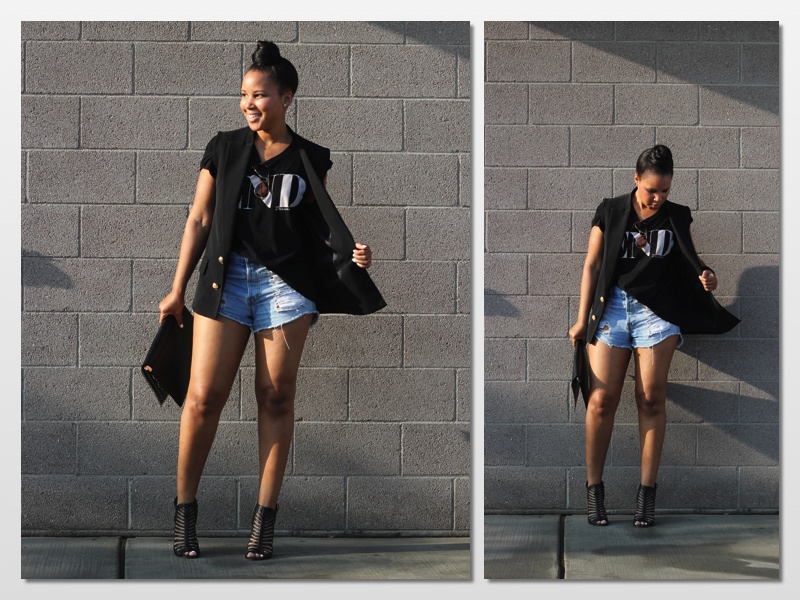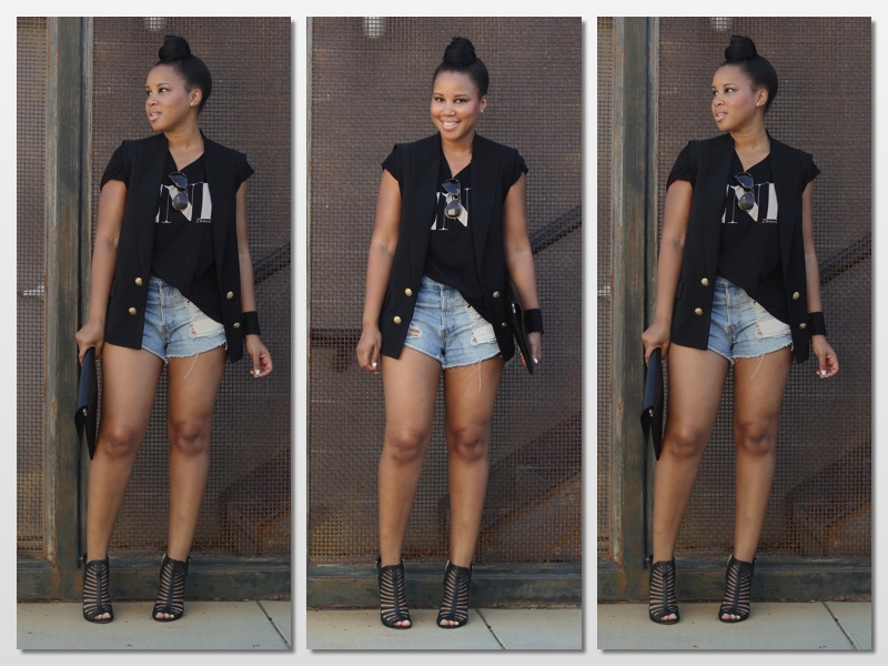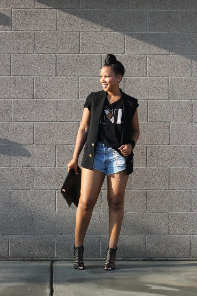 | Vest: Zara, Shirt: Zara, Shorts: Mink Pink |