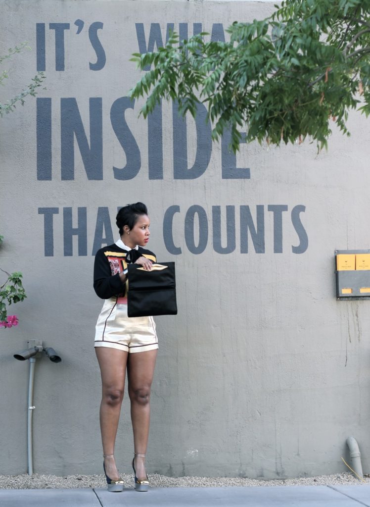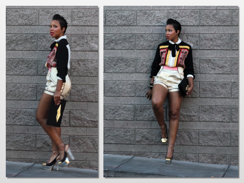 When I saw this Sandro Paisley blouse, I was definitely positive that it was ugly. Like, an ugly kind of cute or a gaudy kind of fabulous. You know what I mean? To take it even further to the next level, I paired the blouse with these gold H&M shorts that are a 70’s kind of 2013. Right? Right…