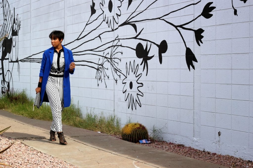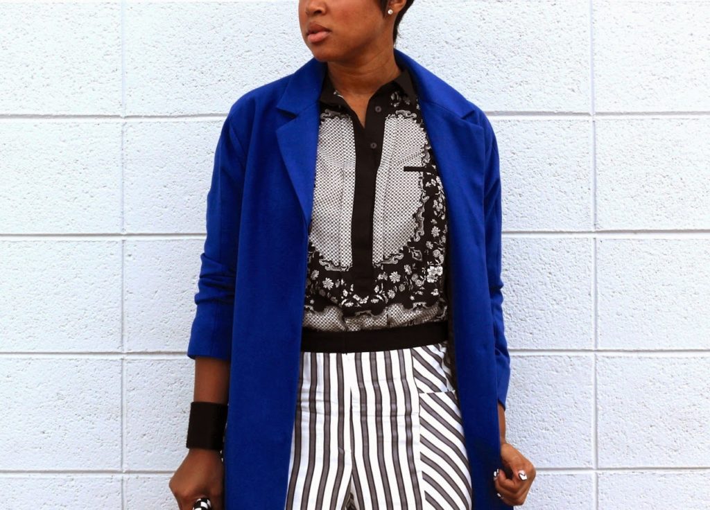 For the last look, I am featuring a little monochromatic mixed print with a boost of color. You all know how I feel about cobalt blue.