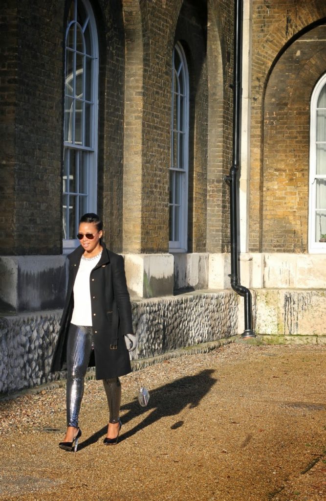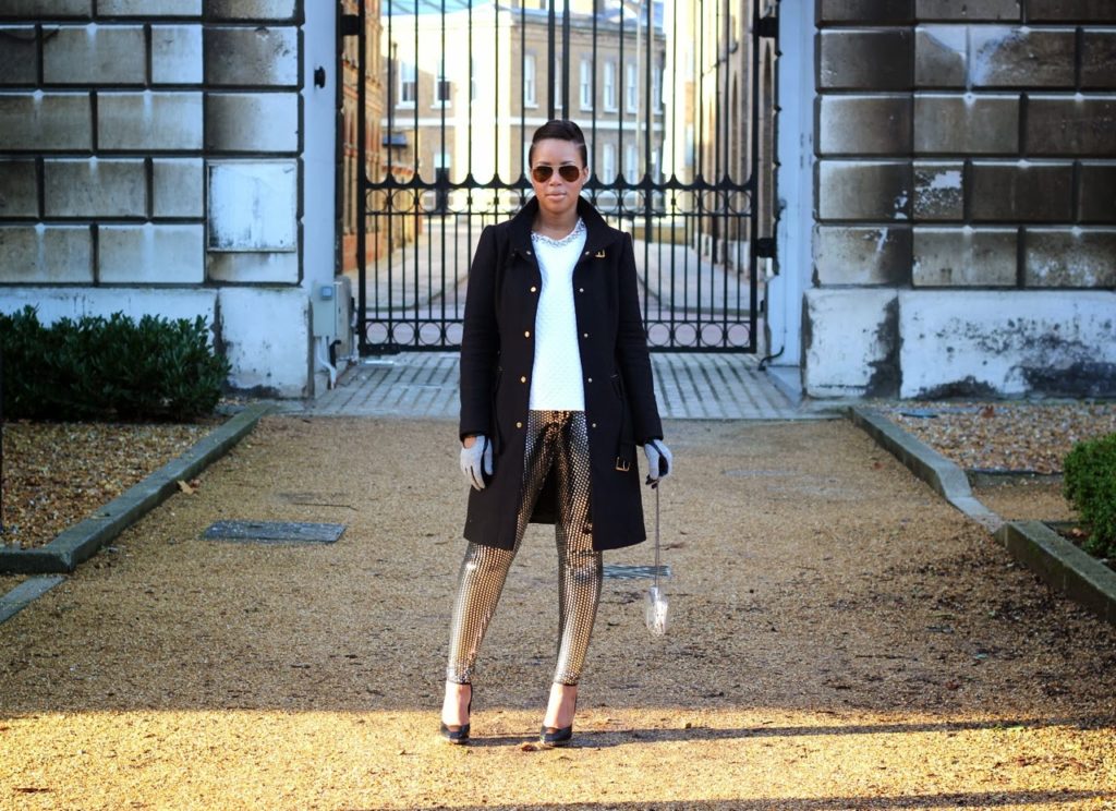 Coat: Zara, Top: Zara, Leggings: Maison Martin Margiela for H&M, Sunglasses: Ray-Ban, Gloves: Zara