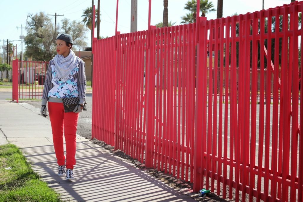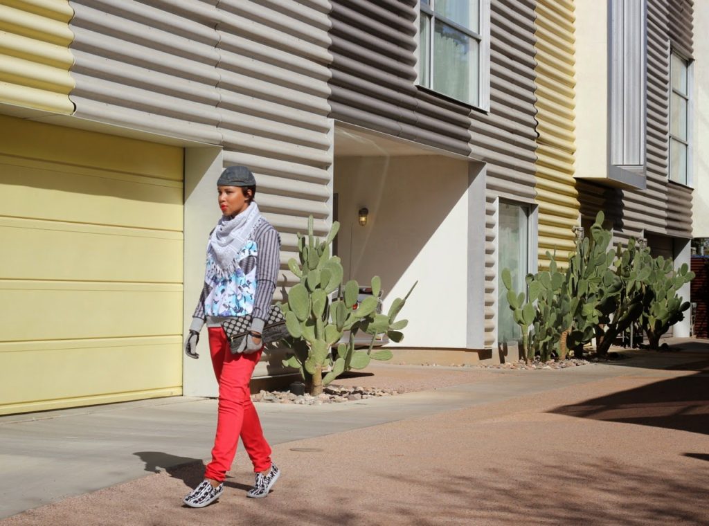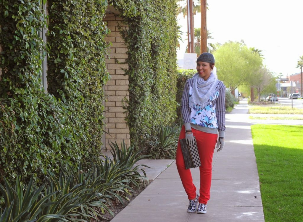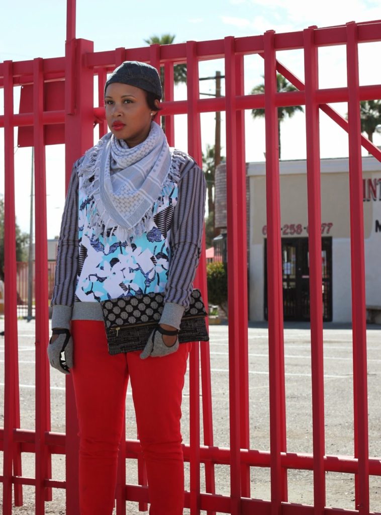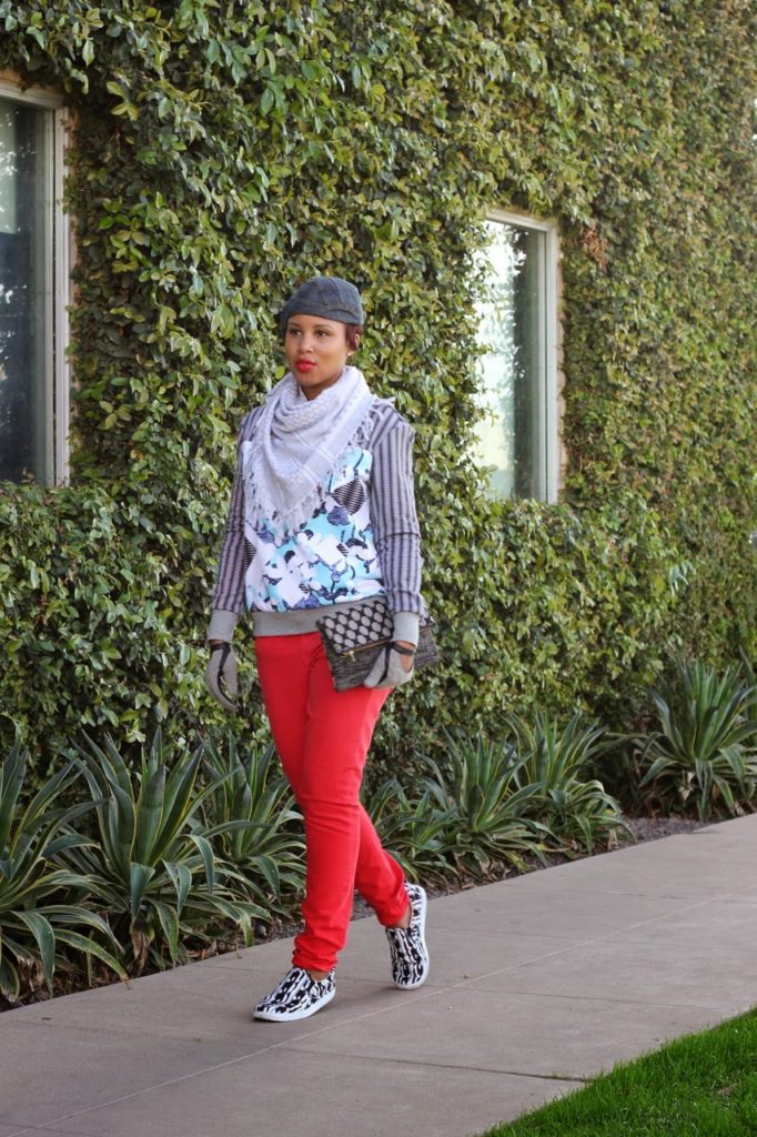 Hat: Armani Exchange, Scarf: H&M, Shoes: Peter Pilotto for Target, Clutch: Nneka Saran, Gloves: Zara
