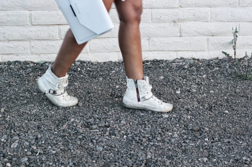 | Clutch: BCBG, Sneakers: Sam Edelman |