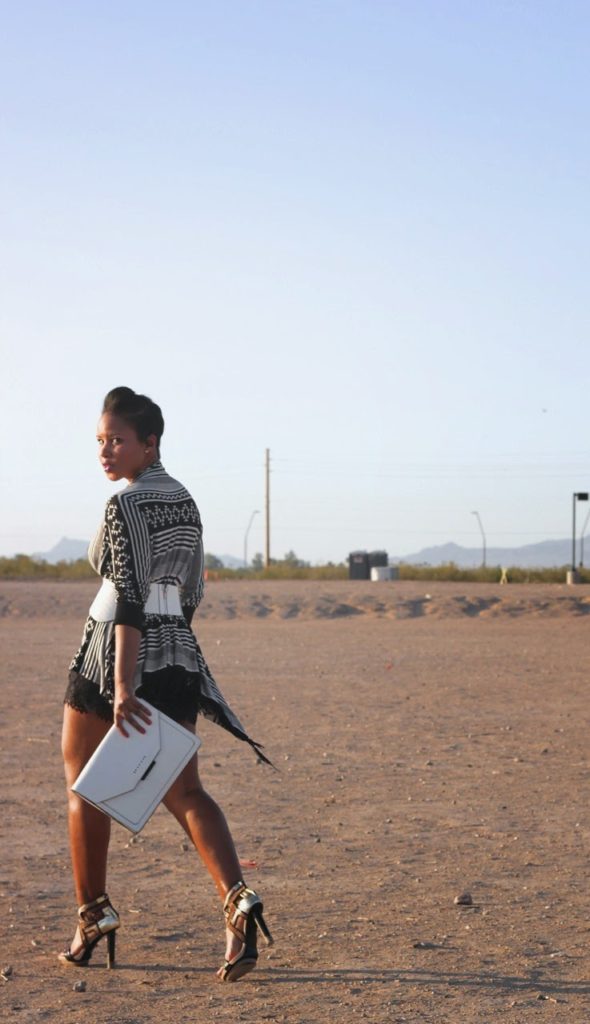 | Cardigan: Forever 21, Shorts: Madewell Broadway & Broome, Belt: BCBG, Clutch: BCBG |