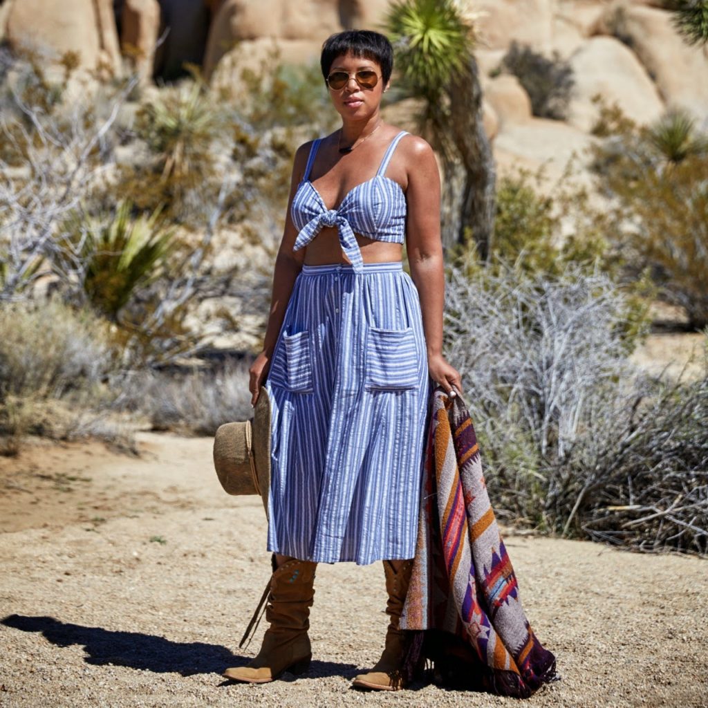 Look #2: Top: ASOS – Sold here | Skirt: ASOS – Sold here | Aztec Cape: H&M – Similar here | Hat: Ecoté – Similar here | Cowboy Boots: Steve Madden – Similar here | Bottle: Jack Daniels