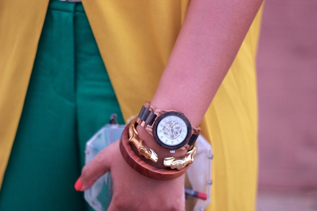 I love the way she blends right in with my other wood and gold bracelets. It’s where jewelry and beauty meet function. I am all the way here for this wood watch movement.