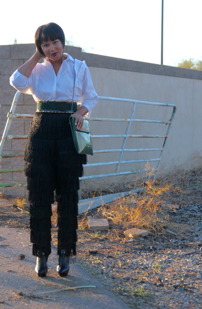 They arrived and I was 100% in love. THEY’RE PANTS FULL O’ FRINGE! Dear, Lord. The movement and texture is EVERTHING! I kept it simple for this look just to let the pants live a little on their own. They don’t need any assistance.