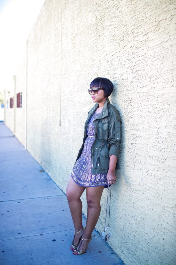 In this look, I took a French Connection sequined t-shirt dress and added a casual sporty vibe with the cargo jacket from H&M. What if you want to be blingy during the day? Welp, here’s some daytime shine.