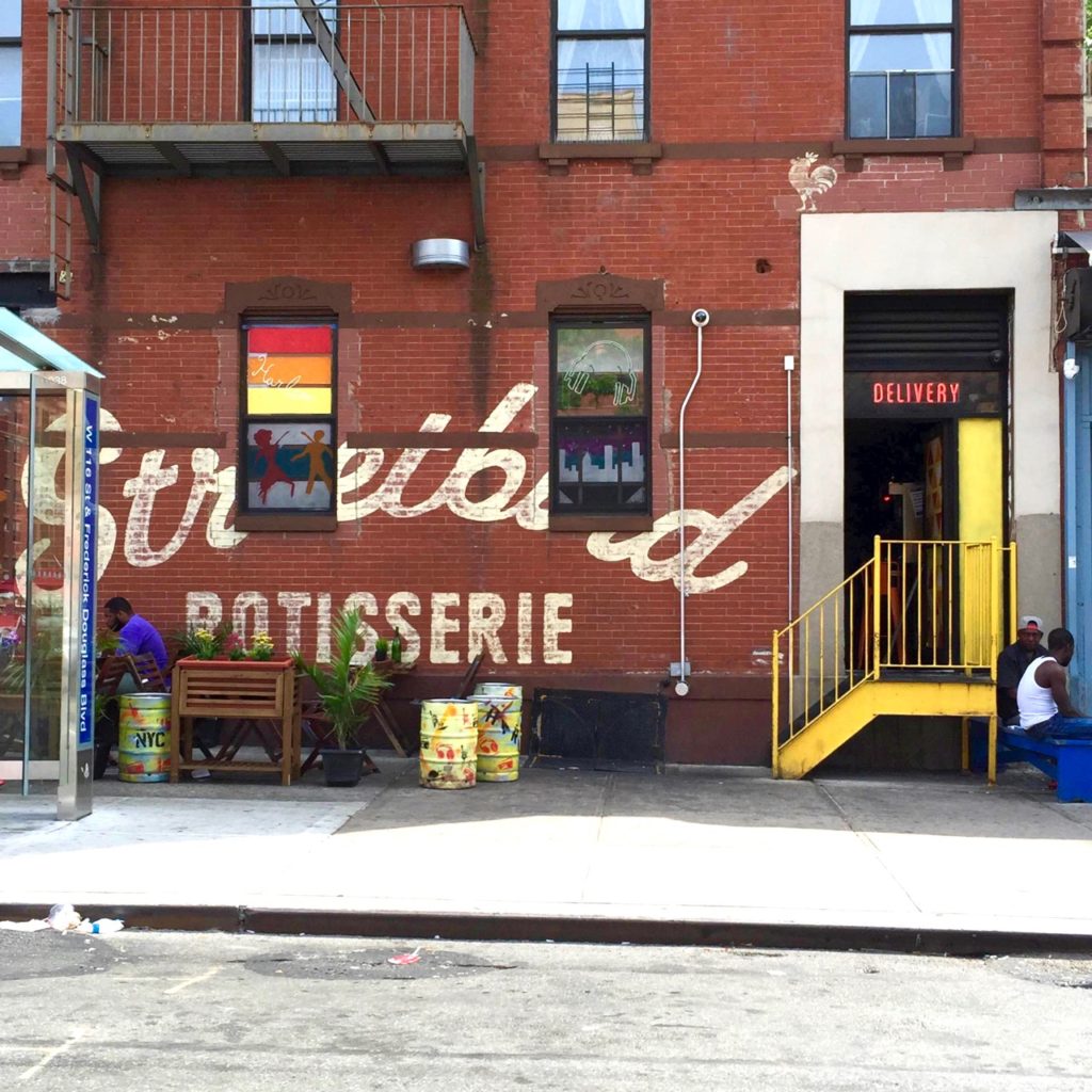 | What a great and memorable thing to do to a garage door! I want to try the food because, with a door like this, it must be pretty tasty! Location: Somewhere in Harlem |