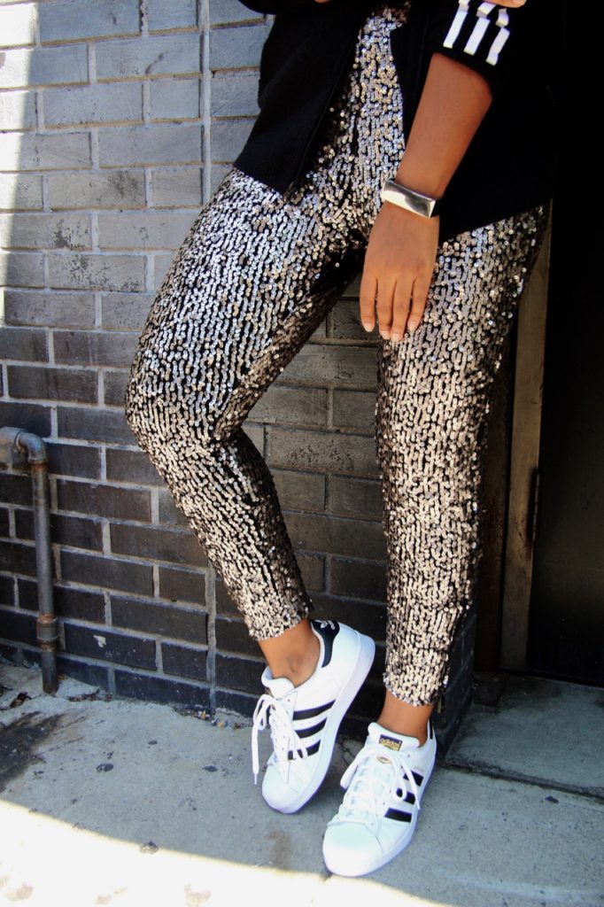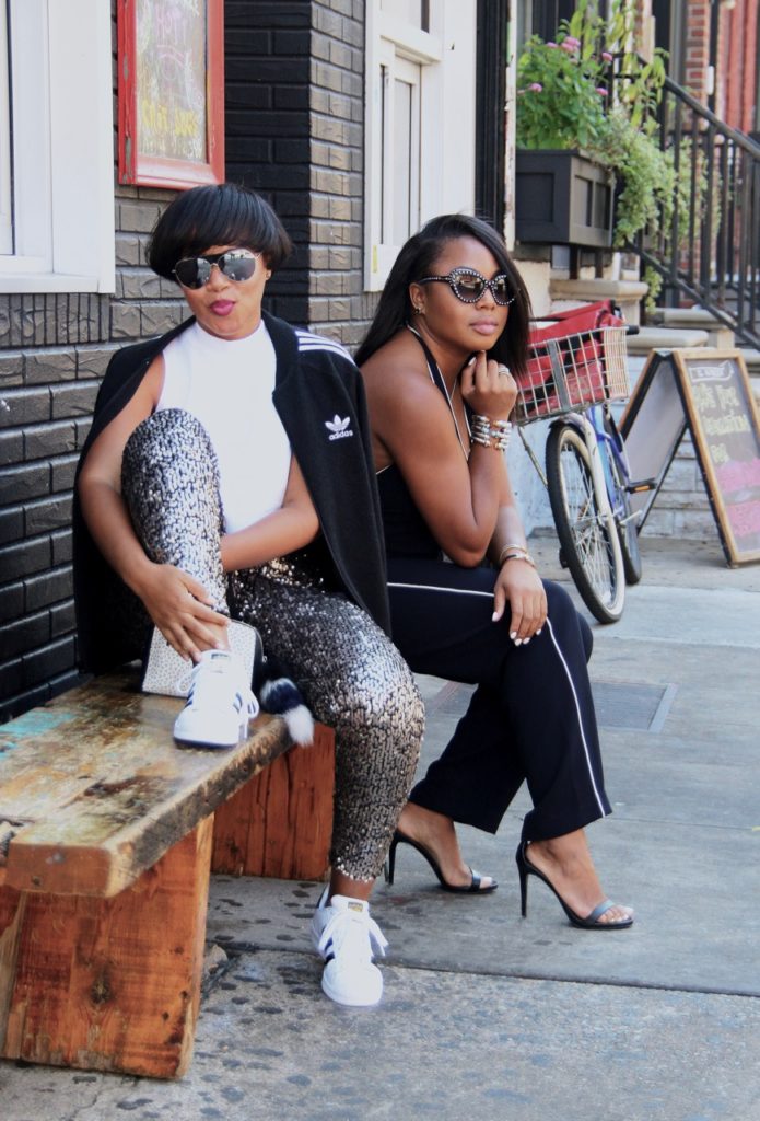 - Make a Statement: Go for the I-could-have-gone-to-the-gym-in-this-but-I-didn’t look by adding a statement making piece like the all-over sequins pants from Nasty Gal from my look and accessorize by adding a great pair of sunnies like Kéla and I both did in our looks.