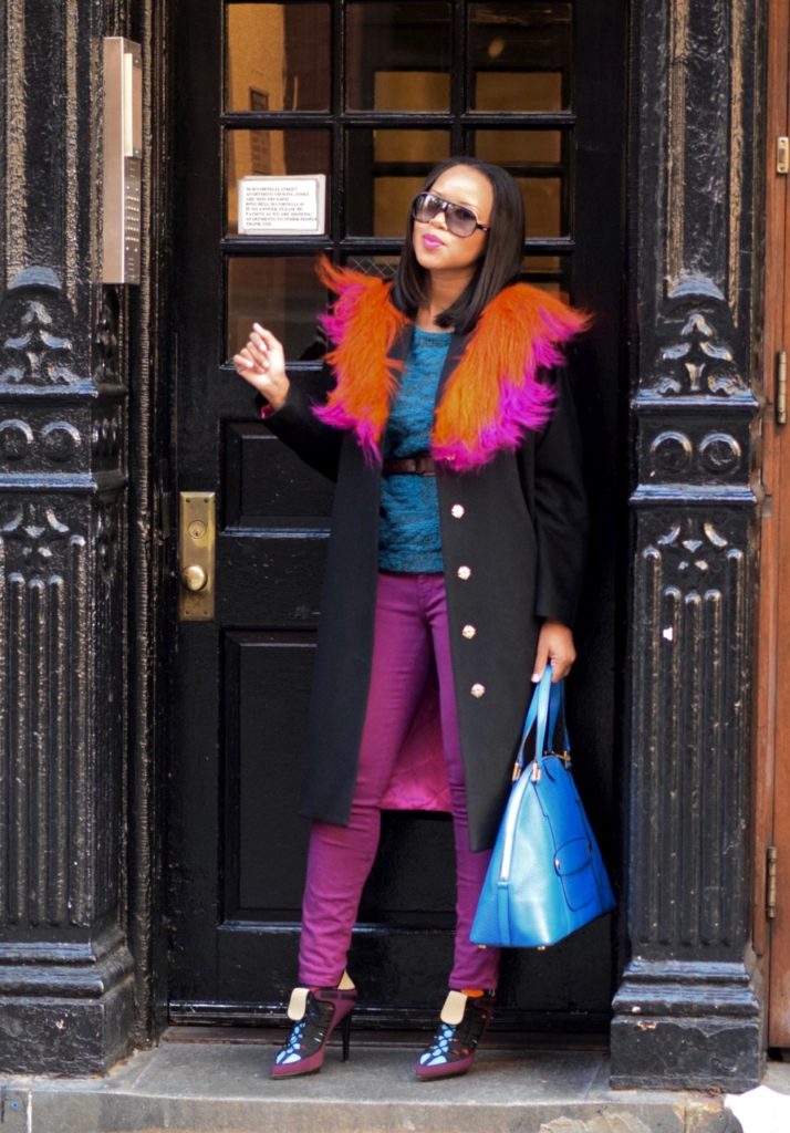 Speaking of birds, I can’t decide on whether this Narciss Aiko Coat makes me look like a vibrant bird or that I have been set ablaze around the collar. Either way, I like it a lot!