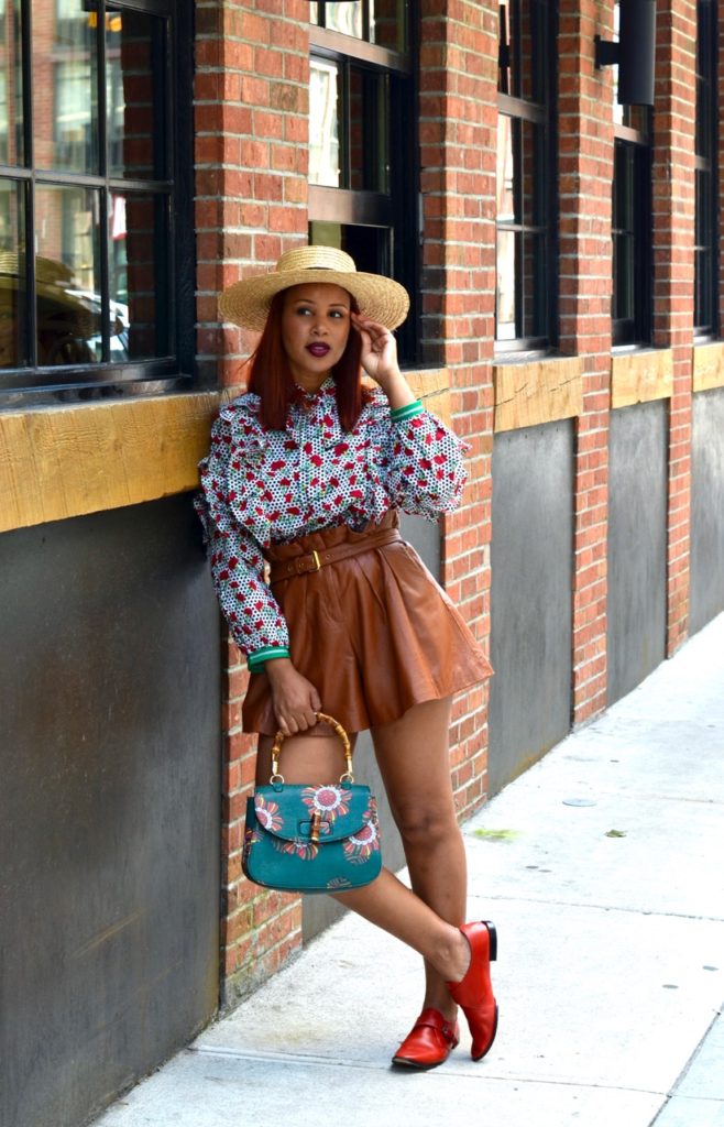 For instance, in this look, it’s still weather and season appropriate to wear this straw boater hat with these paper bag leather shorts. It was actually so warm out that I had to remove the trench coat to stop the sweat beads from dripping down my back.