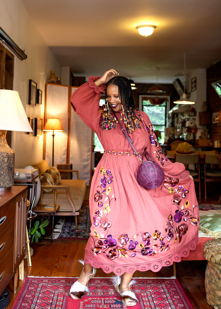 Ulla Johnson Embroidered Midi Dress – Sold here; Similar here and here