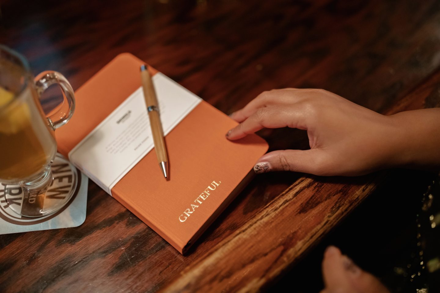 - Adding their name, initials, or something generically personal like “Grateful” to the cover. Some journal brands even offer complementary engraving with purchase!