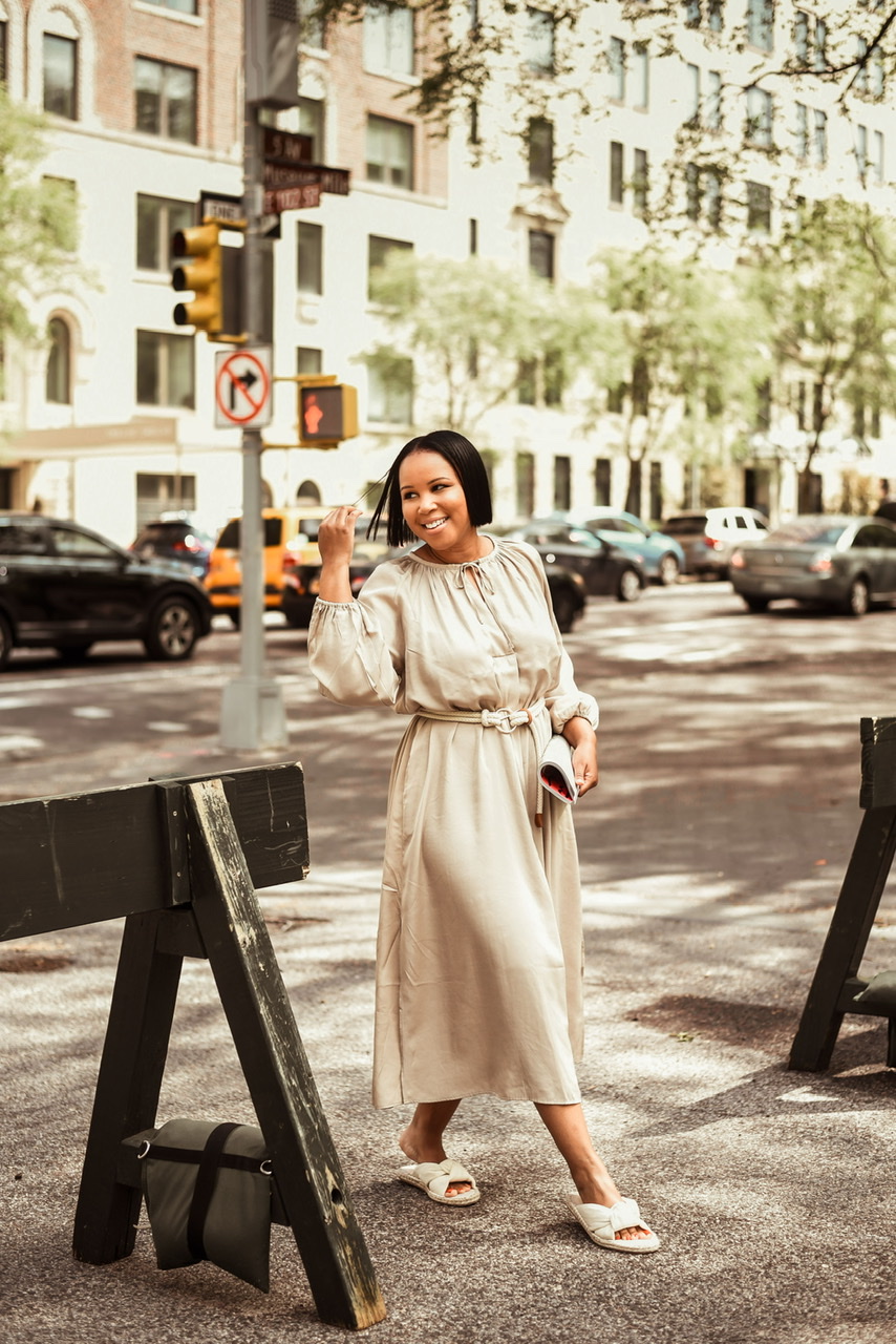 Get into this casually sexy head-to-toe H&M lewk. I love the flow and ease of this dress with these knot detail sandals. You can literally do all of the things while wearing this dress. Anything from running errands to a very chill date night out with bae. I can almost guarantee that bae is going to love how this material feels against his or her skin.
