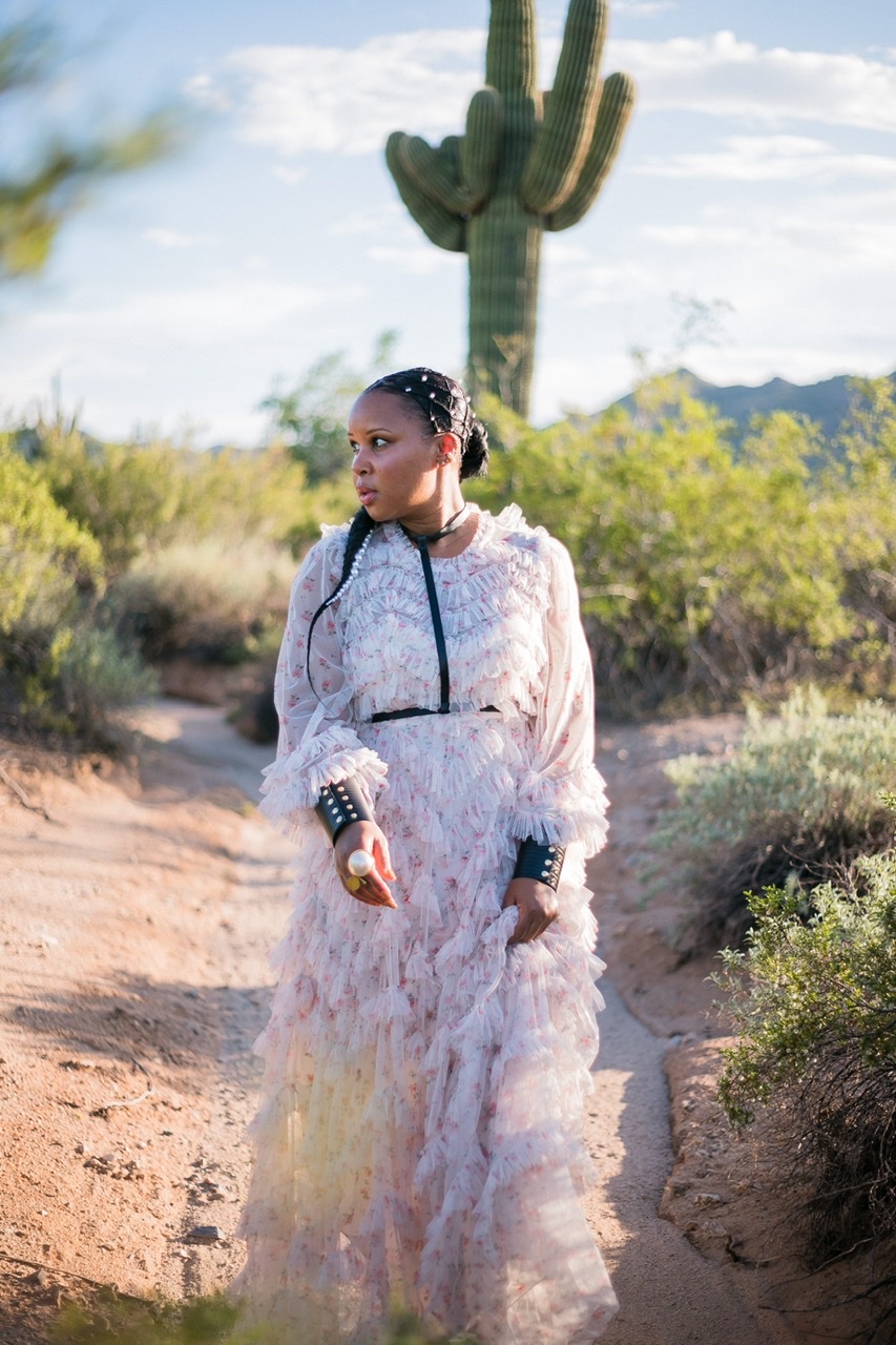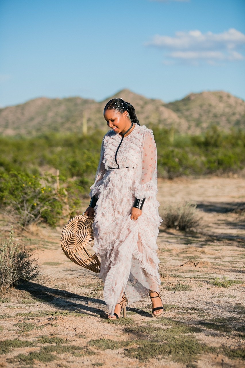 I, for one, am all about a feminine look but I knew when I saw this dress that I was going to add my own edgy spin on it. Here are a few ways that I incorporated edge into this ultra feminine look: