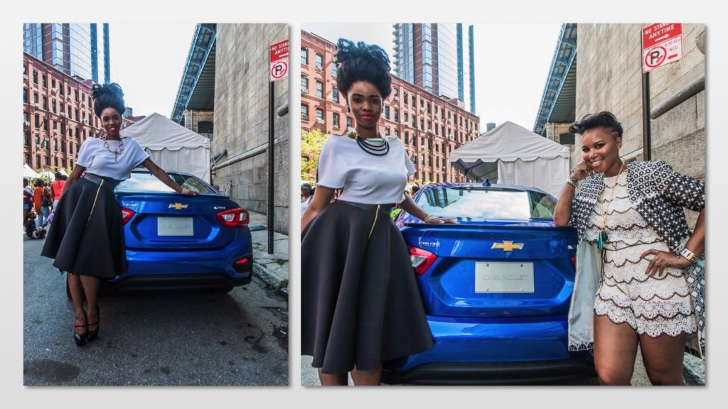 This year, I partnered with Chevy Cruze and Hello Beautiful to do some live action street styling. We pulled people out of the crowd and did a little switch up change up.