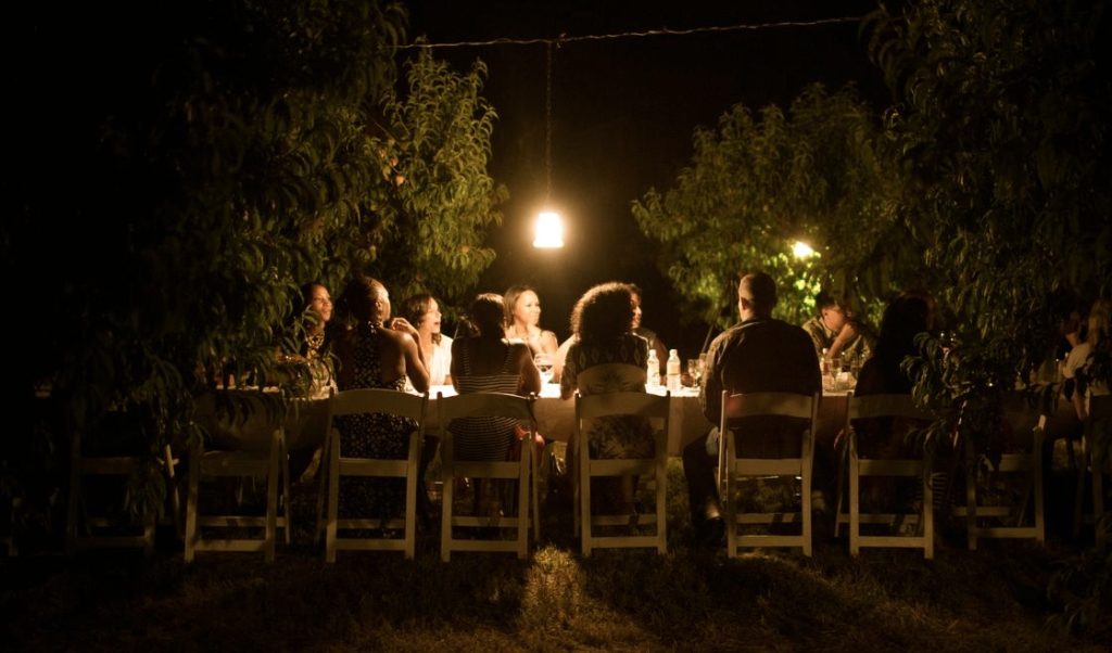 This is “Dinner Down the Orchard” hosted by Schnepf Farms in Queen Creek, AZ. It is literally an experience that you will not find anywhere else in Arizona. Twice a year, the farm invites a renowned chef to come in and prepare a four-course organic quality meal for their guests.